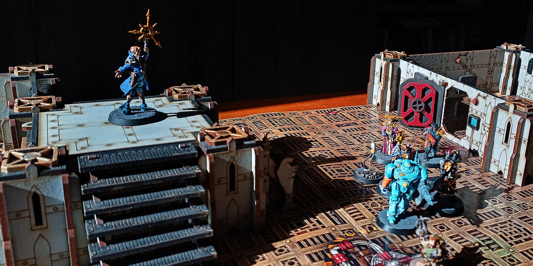 For the first 2 Rounds, the Inquisitorial Agents walk briskly (with Advance moves and everything) to the first door. Rein (or is that Raus?) positions himself on an elevated platform to get a good vantage point on the nearest 2 doors.